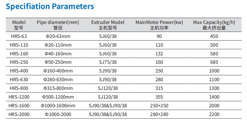 السعة: بثق المسمار المفرد ، مناسب لمعالجة راتنجات PE عالية السعة ، بسعة أقصى قدرها 1000 كجم/ساعة. القطر: من 16 إلى 800 ملم. اعتماد تصميم معقول وامتصاص تكنولوجيا الإنتاج الآمن ، حصلت على شهادات CE و ISO