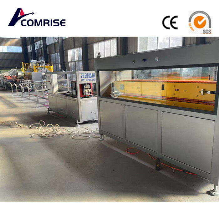 بثق المسمار المفرد → سلسلة ألوان وقاذف متعدد الطبقات → قالب ← خزان المعايرة الفراغ ← خزان مياه تبريد الرش ← النقل ← مزيل الغبار → مكدس ← فحص المنتج النهائي والتعبئة والتغليف